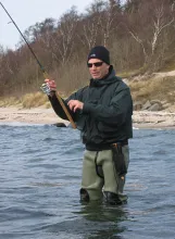 The surprisingly large number of sea trout on Bornholm is caused by several factors. The single most important one is the presence of many spawning streams. The small island has a couple of dozens of streams, where sea trout spawn, and that draws a lot of fish close to the shores during the winter. The strategy of these fish even enhances the chances of catching them on the coast. Because of the small size of the streams and the fact that they are all spate streams with very fickle and unstable water levels, the fish have to engage in a hit-and-run spawning strategy, entering the streams as soon as the water is there and exiting the stream again within a few days before the levels drop.