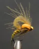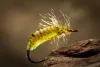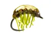 I need a pattern for a John Deere which is popular at Bennett Spring, Missouri. The fly is tied on a jig hook with a green head and yellow eyes but I don't know the colors of the body and tail. Surely appreciate any assistance.