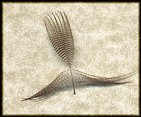 STEP 3: Select a lemon wood duck flank that has center fibers just slightly shorter than the hook shank. Fold back the "extra" fibers carefully to the correct wing length, which should be approximately from the back of the head to the tip of the tail. Your selected feather should look approximately like this: