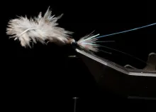 I will use soft hackle feathers for the body and the legs. Whiting Chickabou is the best I know, but you can buy bags of soft hackle feathers, which will work well. And most necks and saddles have leftover soft hackle feathers along the edges, which can be used for this fly. In a tight spot you can also use marabou.