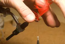 This sequence shows how to tie the fly with a wing in several sections, This gives a nicer, drop-shaped wing, but also requires more tying steps. You can tie the wing in a single section if you're lazy...