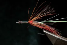 The Djihad is a bright fly with a shiny body, silver combined with black and red. Just my kind of fly. I like the Irish Shrimp tradition flies, and this is such a fly on steroids. It even uses one of my favorite materials: Golden Pheasant.