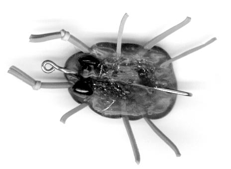This is a fly made for a very specific purpose: cod fishing. It's used on a sink tip or sinking line over fairly deep water (3-4 meter or 10-13') from a float tube, and will turn upside down and 'walk' on the bottom. It's a great fly for these fish that often feel like a bag of marbels when you lift them out of the water because their stomachs are so filled with crabs. It's hell to cast this fly because of the weight of the fly and line, but as long casts are normally unnecessarry, it's not a big problem. For the faint of heart I have developed a smaller version too: The Femmer Crab.