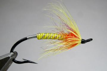 This fly uses a special technique where a strand of floss and a strand of tinsel is twisted together before the combo is wound on the hook shank. The rope - if twisted regularly enough - will form a nice segmented body with built in ribbing. The name of the fly is divised from this technique and the fact that it's made mainly from yellow materials. A similar fly without the twisted body is Orange Twist.
