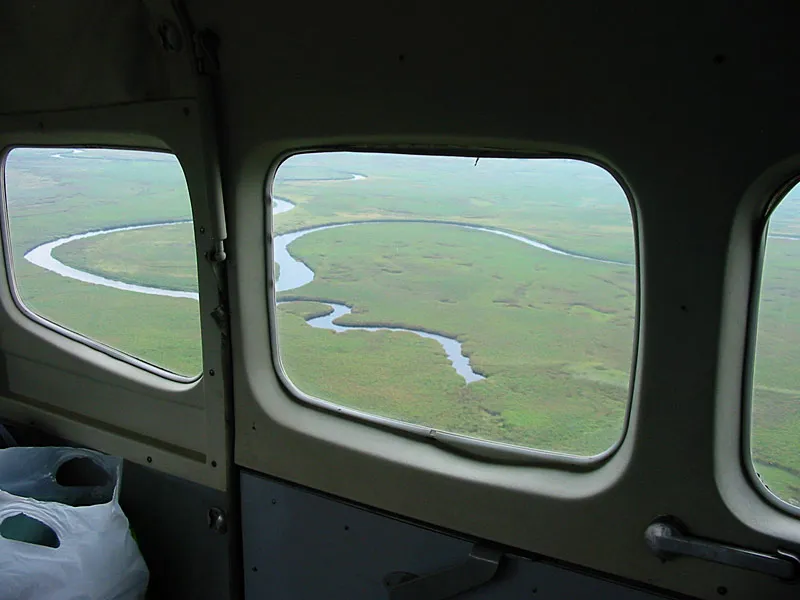 The Okavango River snaking south towards the Delta